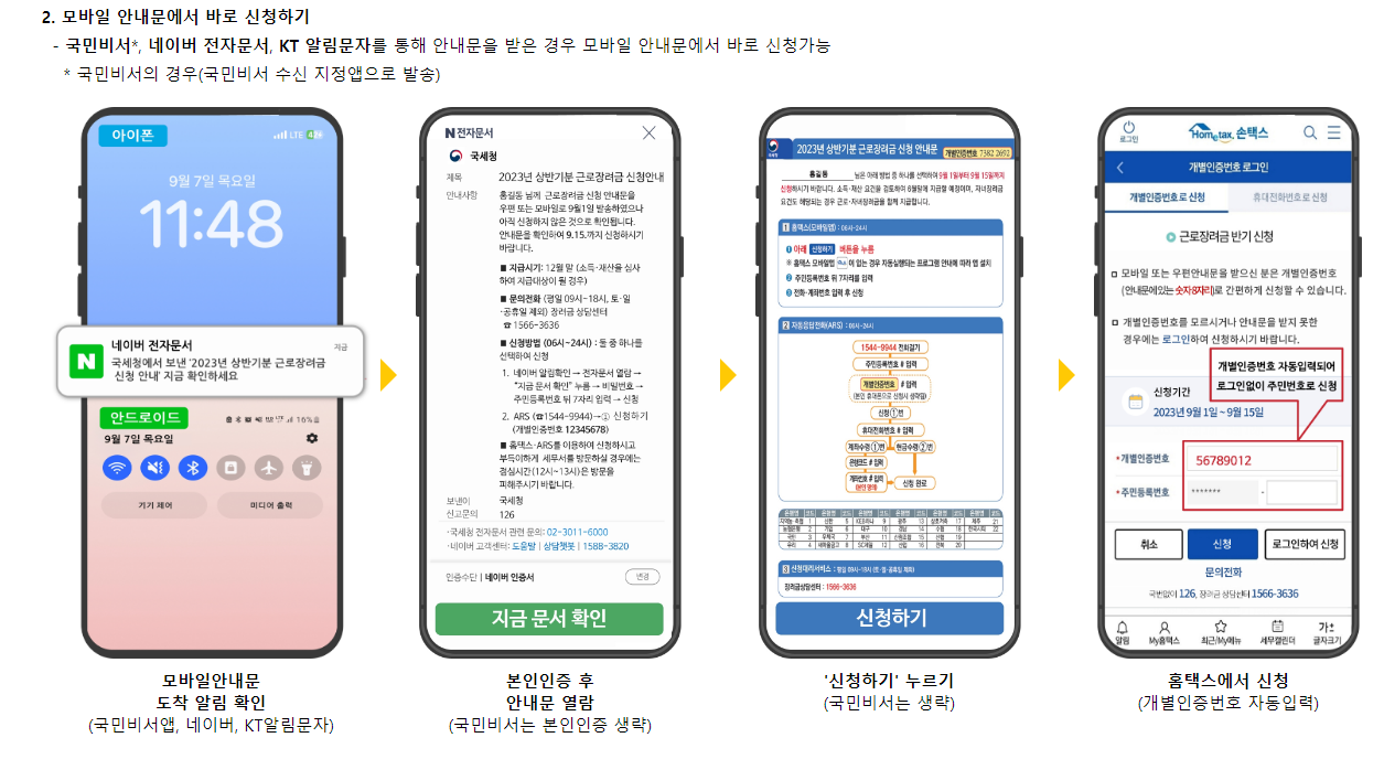 모바일 반기 근로장려금 지급일 조회