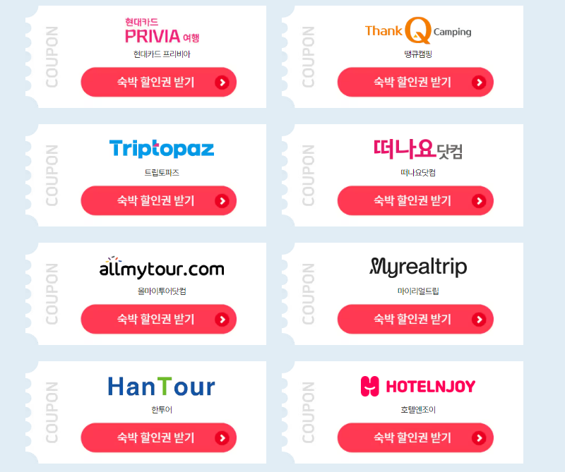 숙박권 할인쿠폰 발급이 가능한 온라인 여행사들을 확인하세요.