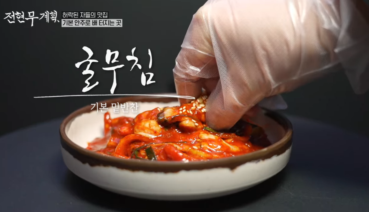 전현무와 곽튜브는 골뱅이무침 과 고추잡채를 시켰는데, 두 메뉴를 제외하고도 기본메뉴가 많이 나오고 ,