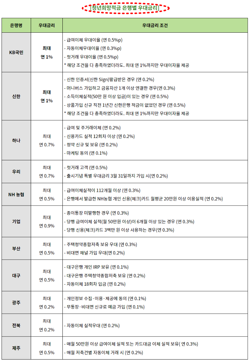 - 조건 : 정기적인 저축 필요, 참여하는 금융기관에서 계좌 개설 필요