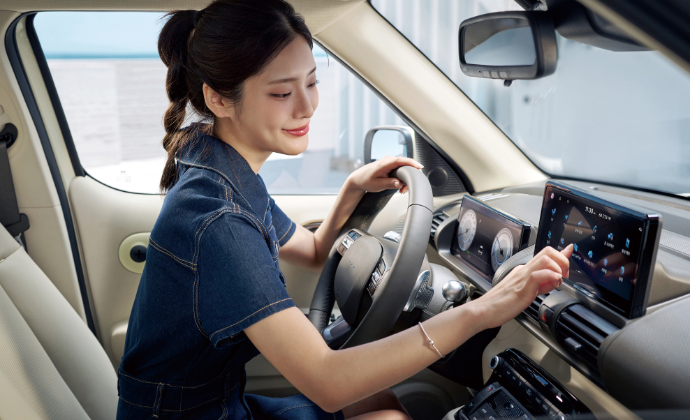 캐스퍼 일렉트릭의 실내는 10.25인치 LCD 클러스터와 내비게이션, 전자식 변속 칼럼을 적용해 공간 활용성과 사용성을 높였습니다. 넓고 여유로운 공간을 제공하여 탑승객에게 쾌적한 경험을 선사합니다.