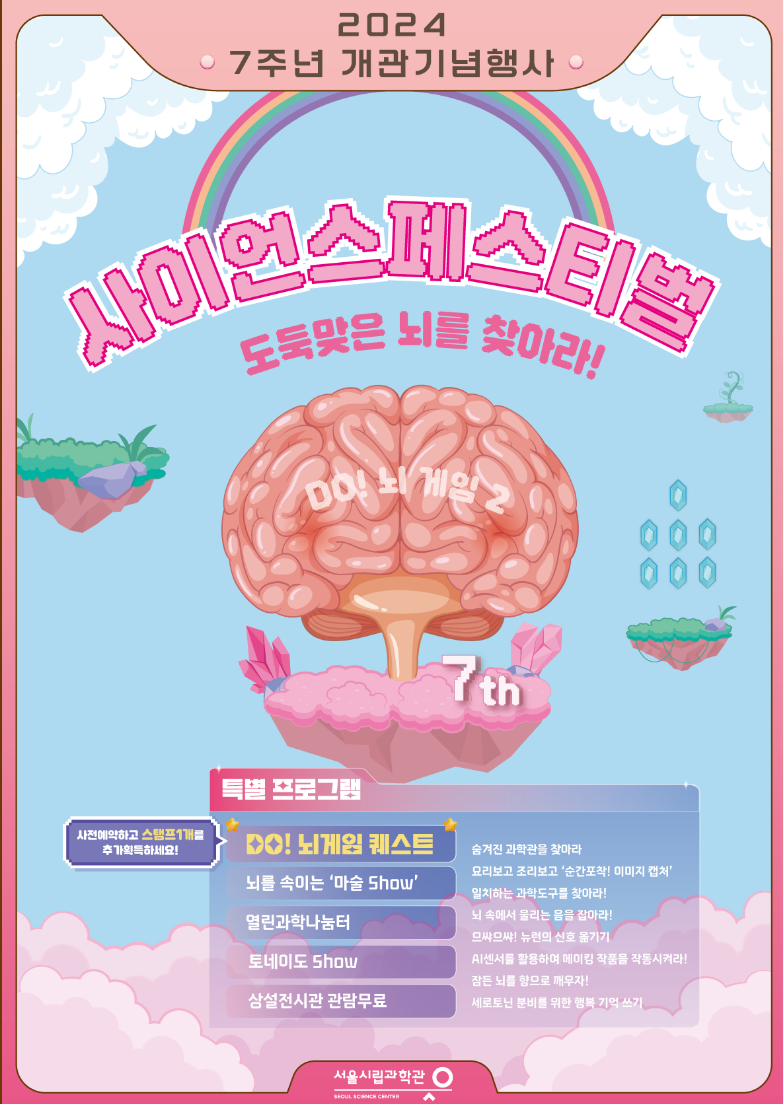 서울시립과학관 개관 7주년 행사에는 7번째 생일을 축하하는 기념 이벤트를 포함해 '도둑맞은 뇌를 찾아라!" 를 주제로,